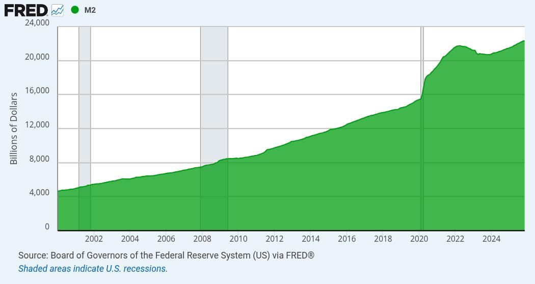 This is a great return, despite starting at a then "exuberant" peak. Especially considering that the M2 money supply has grown by 6.2% per year over that same period of time.