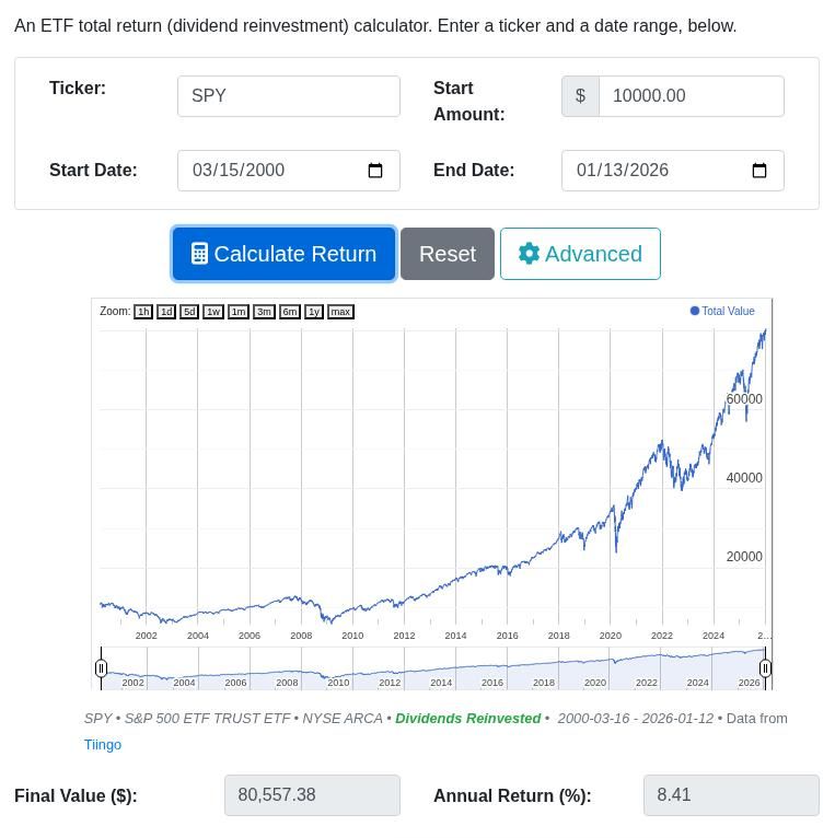 With dividends reinvested, e.g. via the SPY ETF, the total return increases to 8.41% CAGR.